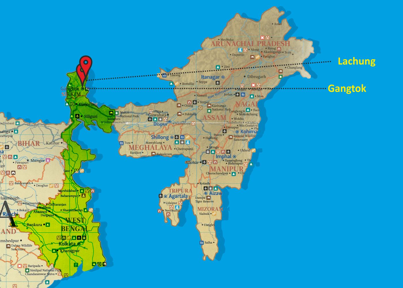Welcome on arrival at Bagdogra Airport / New Jalpaiguri Railway Station and transfer to Gangtok (114kms/4.5hrs). At an altitude of 5500ft Gangtok is the capital of the state of Sikkim, a beautiful and clean town promising of the best monasteries and landscapes. Evening free for individual activity and leisure. Overnight stay at Gangtok.